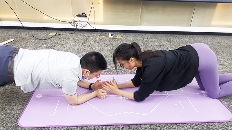 At the same time, this is not only a corporate health lecture, nor is it a >coach’s oneman show. It is a time for every employee to participate and practice and share together.