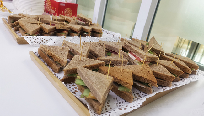 企業(yè)健身(shēn)講座中特地(dì)為(wèi)員(yuán)工(gōng)準備的(de)全麥三明(míng)治,愛(ài)美(měi)食更要(y↔ào)愛(ài)健康。